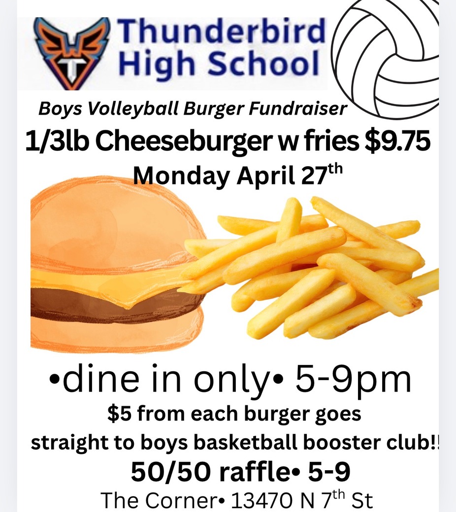 5pm-9pmTHS Boys Volleyball Burger FundraiserMonday, April 27th, 2026